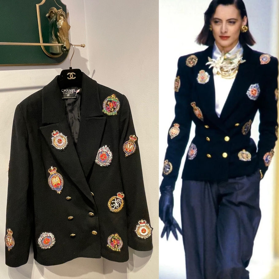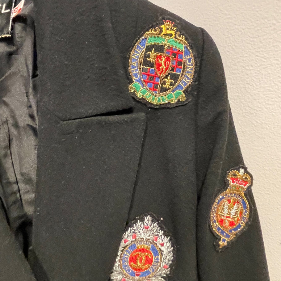 Chanel by Karl Lagerfeld black wool blazer covered with embroidered badges, A/W 1988-89