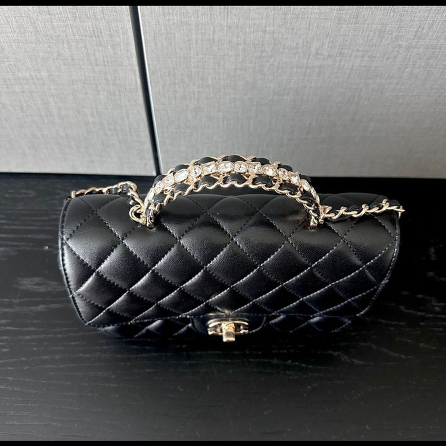 Peut se porter en bandoulière ou porté main avec la poignée ornée de strass