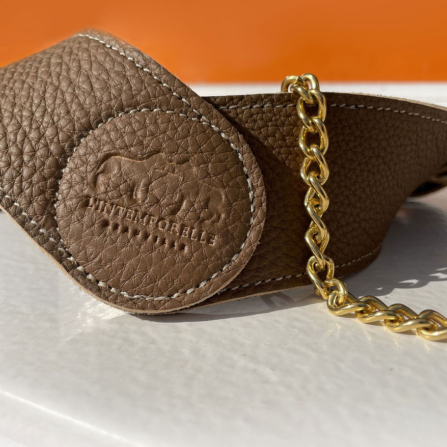 Handcrafted in Normandy, each harness is a one-of-a-kind piece made from the finest leathers used by renowned French couture and leather goods houses. The golden brass buckles are sourced from exceptional makers such as Poursin, ensuring unmatched quality and durability.